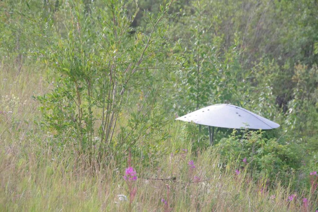 It was a lovely campsite along the lake. They even had a bear-proof container to put your food, complete with a label that talked more about humans than about bears. Not far away as a “bird blind” that was in shade and hidden that you could sit and watch the lake as well as the birds.